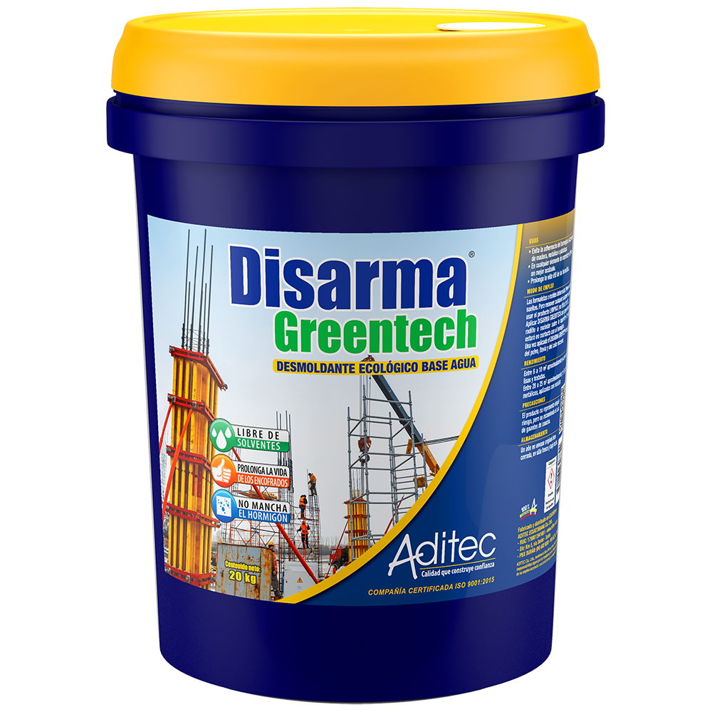 Es un desmoldante ecológico base agua, no hidrocarburo. El producto al ser aplicado en los moldes forma una película superficial que evita la adherencia del hormigón.